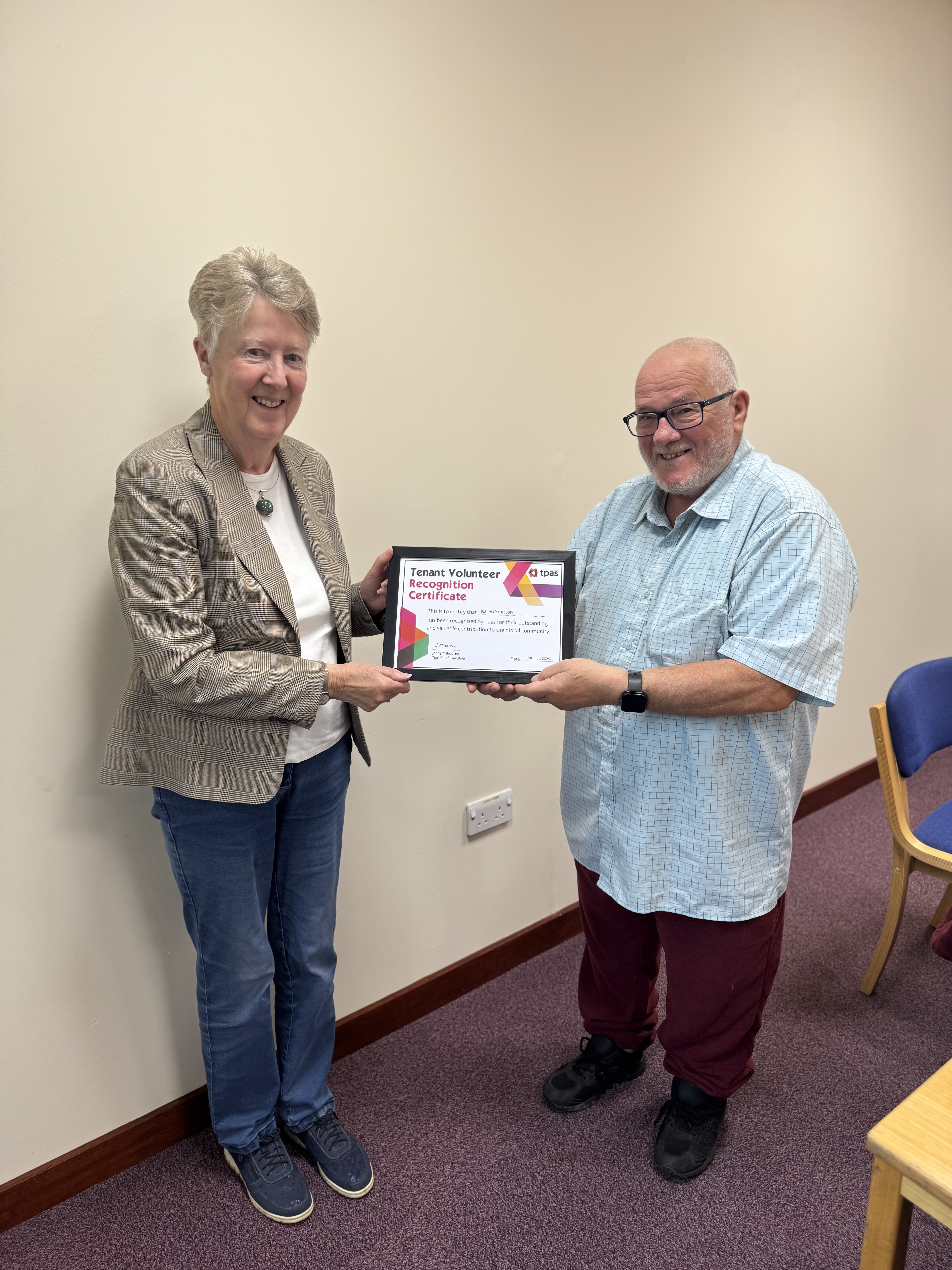 So, whether it's holding landlords to account, improving services, being a community champion or simply being that kind of person who makes the day brighter for others, why not nominate them to receive our Volunteer Recognition Certificate.